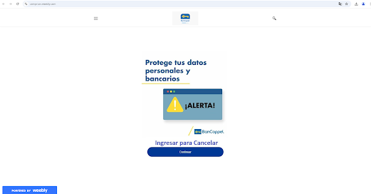 Continuando con el análisis, al ingresar al enlace se direcciona al usuario a una página, pero en este caso no existe concordancia, ya que inicialmente se notificaba una compra por Bancolombia, pero la página que se muestra está suplantando a BanCoppel.